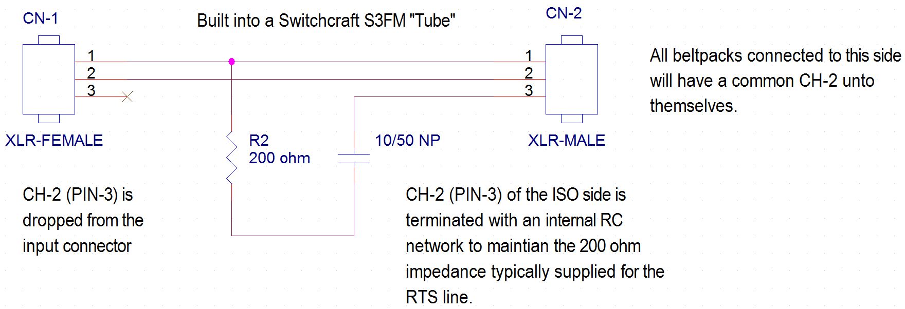 Sometimes,an un-balanced or ground referenced signal run for 500' or more will get a lot of noise or interference. This is especially true if un-shielded wire is used. 25-pair, JKT, etc are examples of this. If you transformer isolate the TW line at each end, the common mode rejection will quiet most of the noise induced in the length of the wire. Since DC voltage will not pass through a transformer, the beltpack will need a source of power at the remote end of the wire.